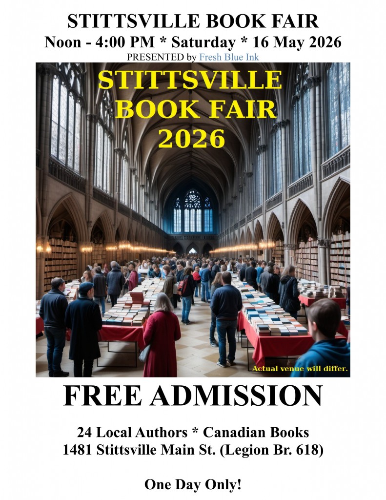 This year Fresh Blue Ink presents our book fair in Stittsville. Although we are based in North Kanata, our preferred venue was not available this year, so we have moved one suburb over. We are thrilled to hold the Fair in a venue with such great visibility, as it is located on Stittsville Main Street.